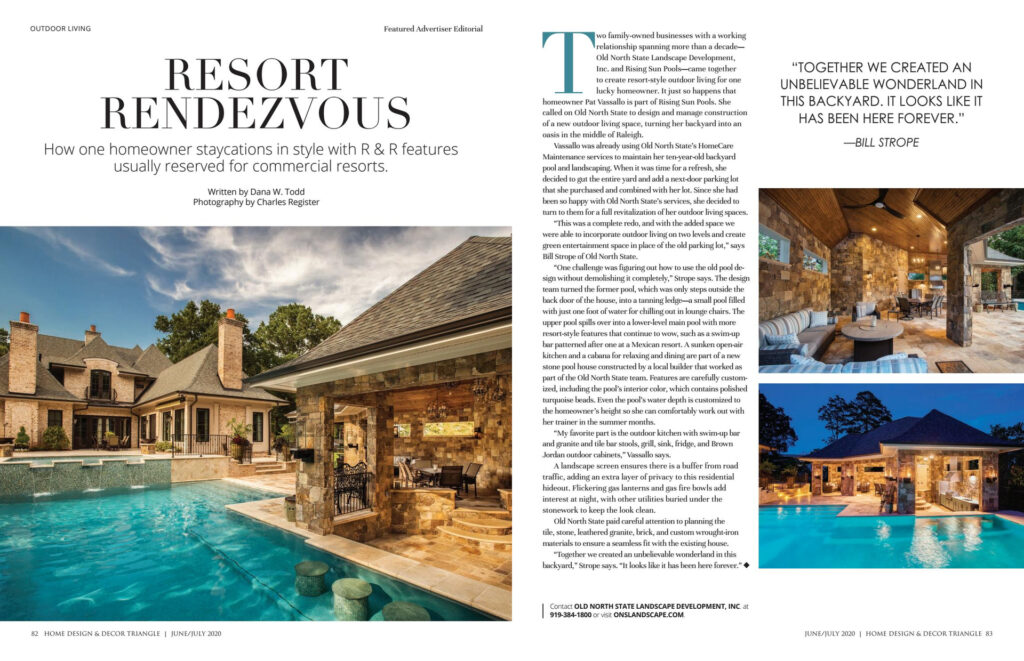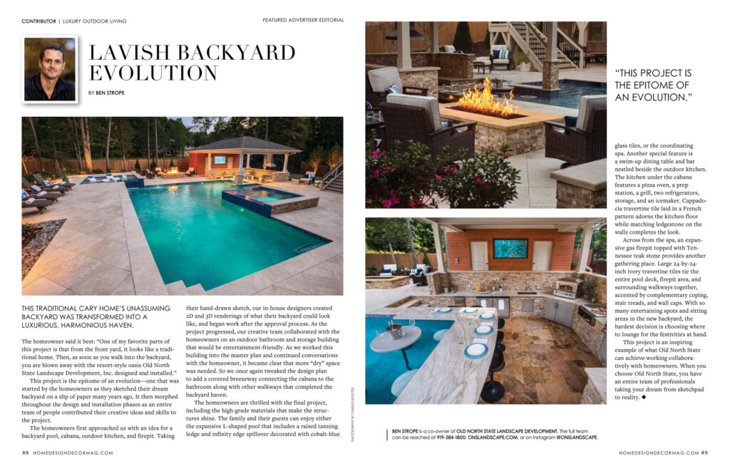 "We always loved our backyard because it was a large, secluded, peaceful, flat grassy area with mature beautiful landscaping. We worried how putting in a pool would change the space, what we might lose. Ultimately our desire for a pool for our family was greater than our personal concern. It’s still hard to process the extent the pool has elevated the backyard and our happiness. It now looks and feels like a private luxurious resort, a secluded retreat, a personal oasis where we literally swim in and are surrounded by luxury. Changing the outdoor space completely changed our entire home, and the way we use it. Our oasis has become an extension of our home. The favorite room, the always perfect spot regardless if it's a hot summer day or cool fall morning, the space you want to go to for more reasons than we ever would have imagined (relaxing in the pool, dinner with the perfect ambience, reading a book, peaceful morning coffee, sitting and listening to the waterfalls as the rush of life is forgotten), the place we open our door and literally step into our dreams."