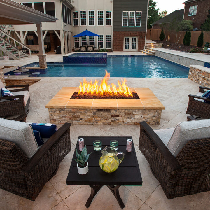 The homeowner said it best: “One of my favorite parts of this project is that from the front yard, it looks like a traditional home. Then, as soon as you walk into the backyard, you are blown away with the resort-style oasis Old North State Landscape Development, Inc. designed and installed.”