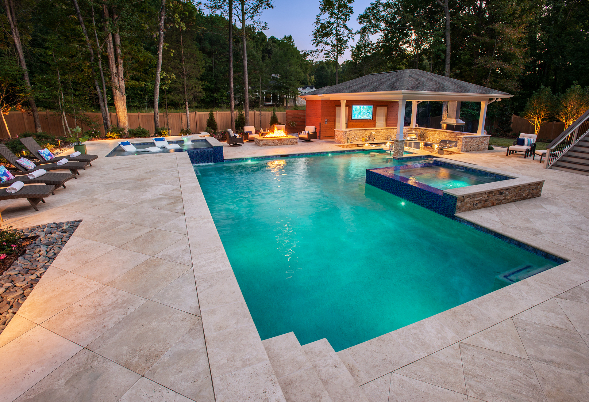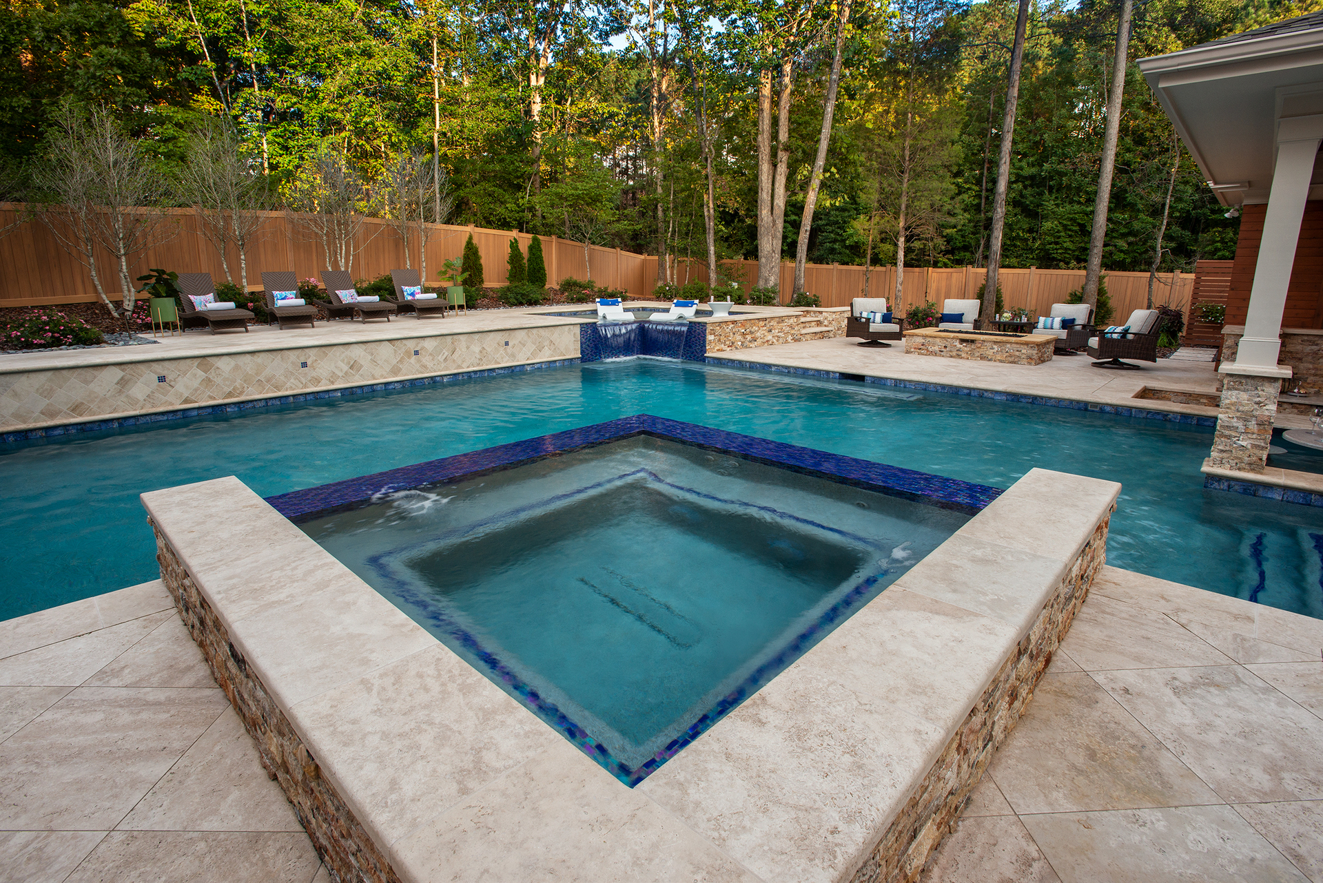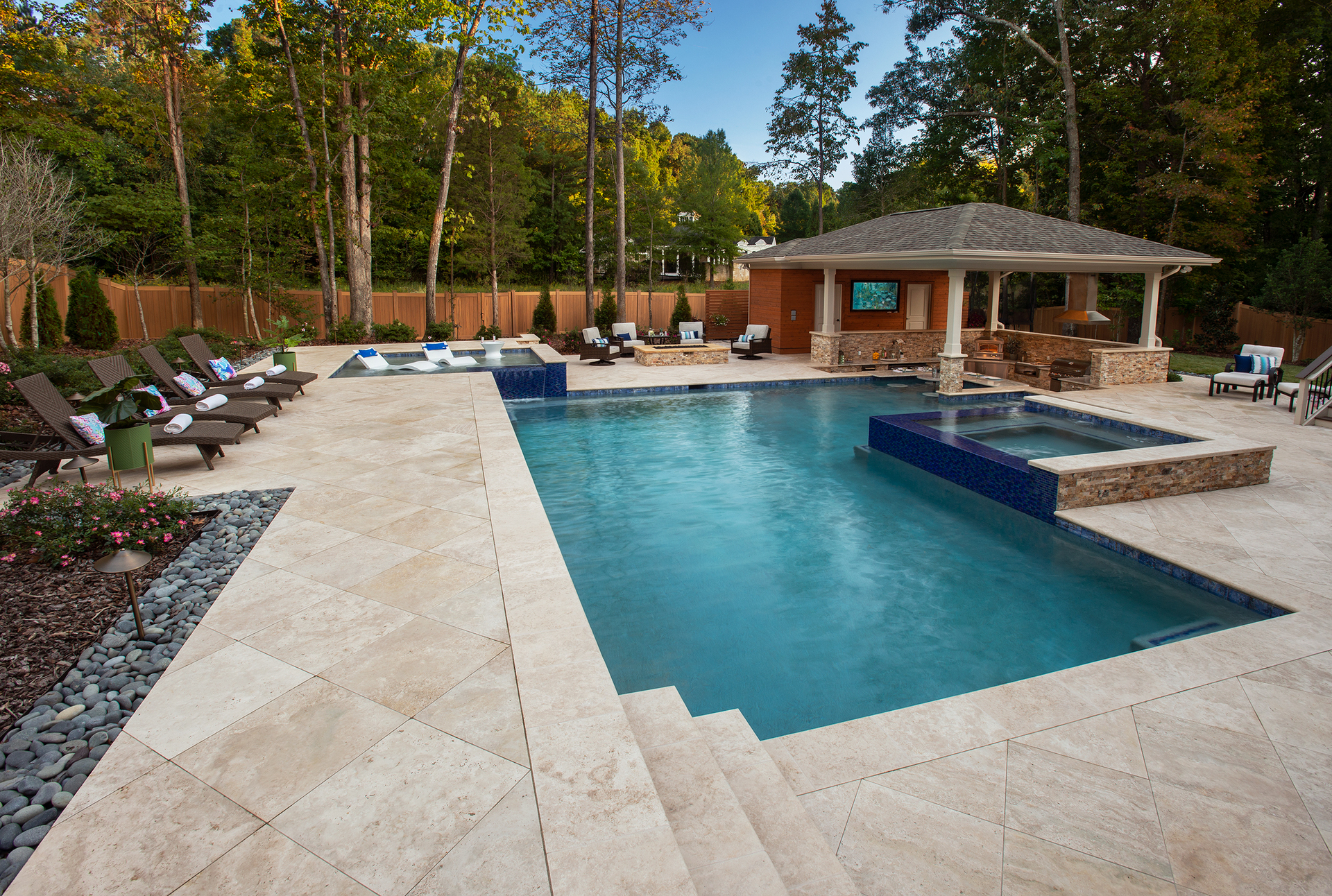 This traditional Cary home’s unassuming backyard was transformed into a luxurious, harmonious haven.