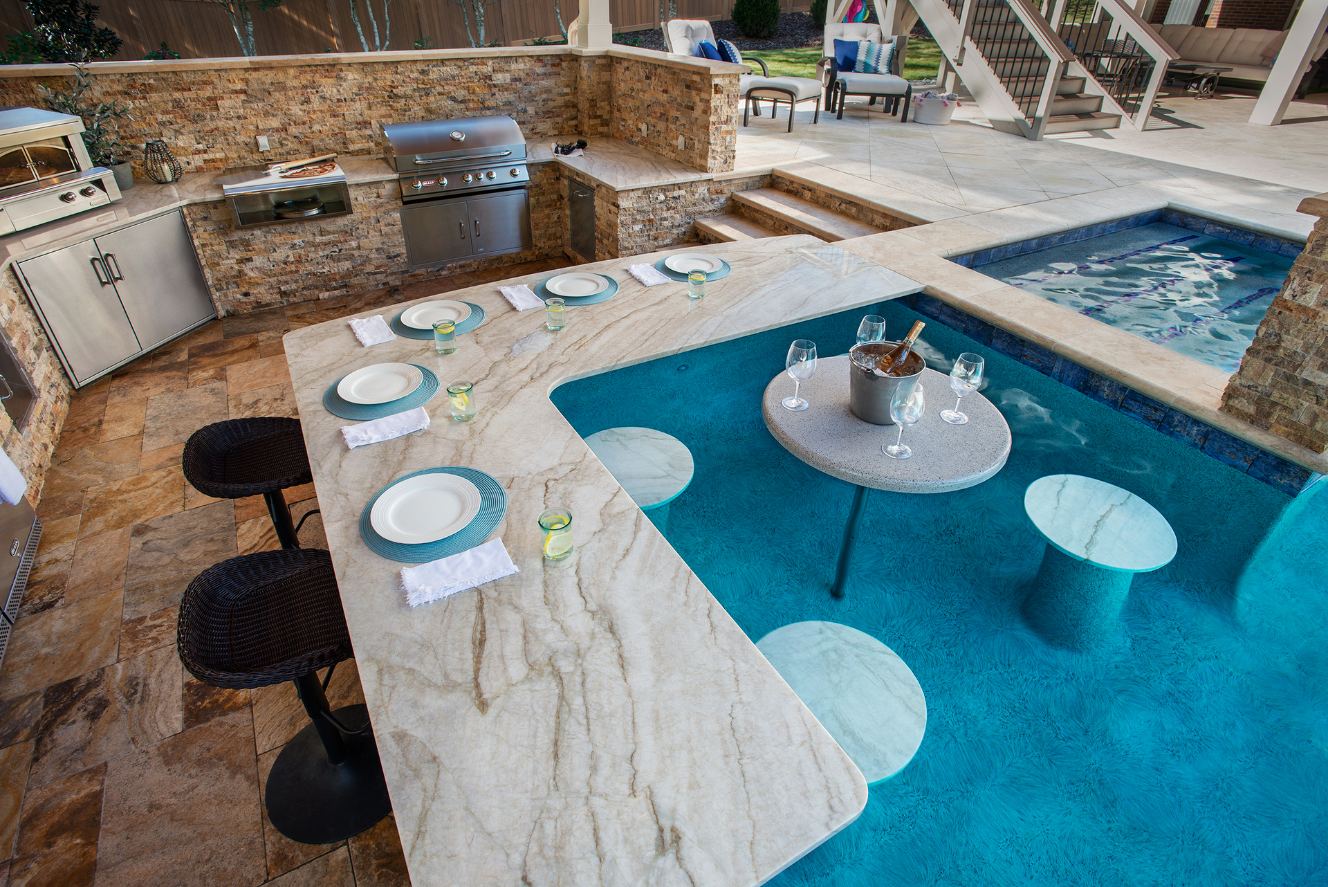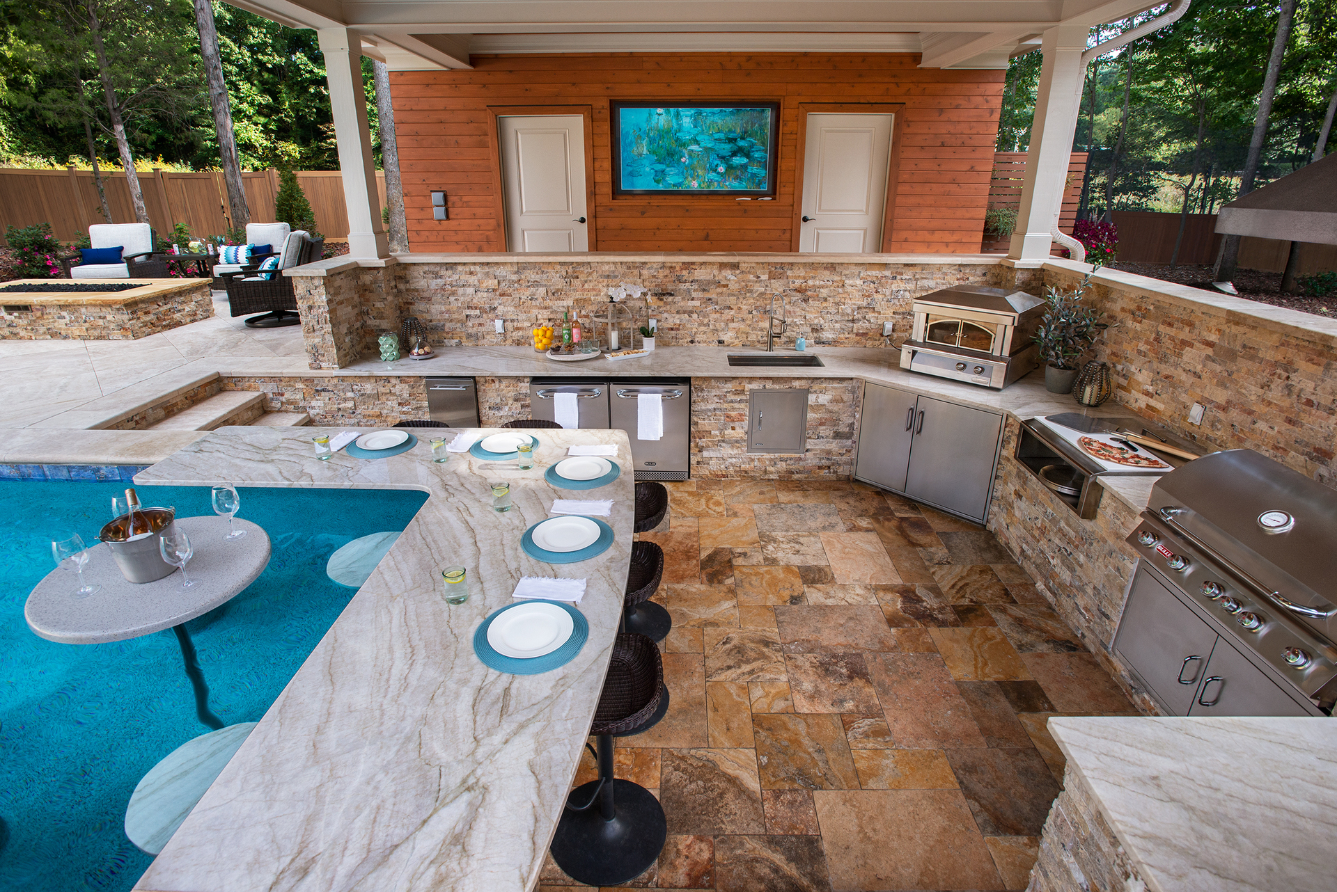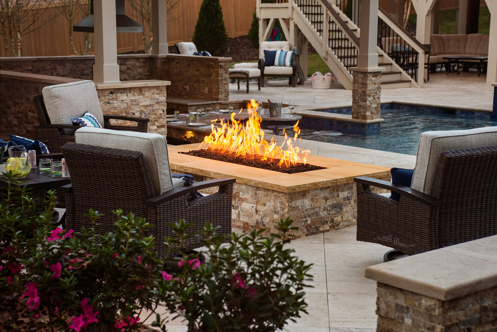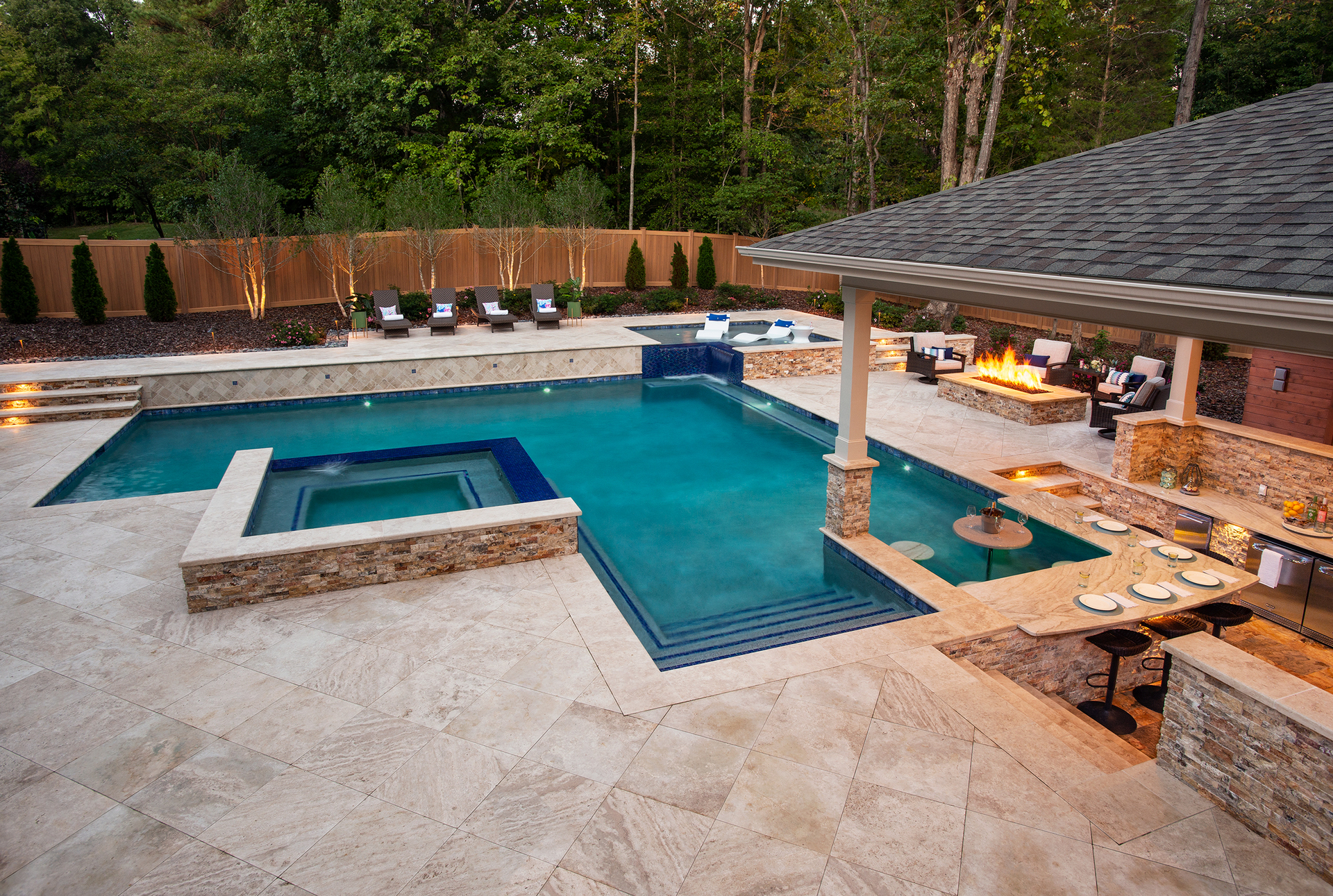 This traditional Cary home’s unassuming backyard was transformed into a luxurious, harmonious haven.