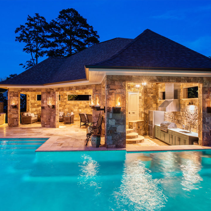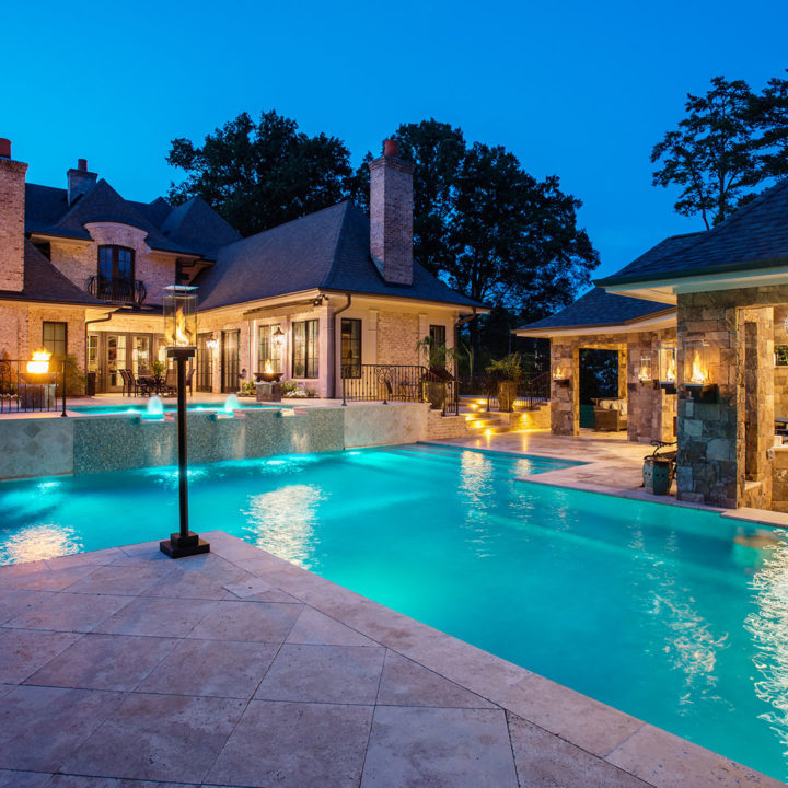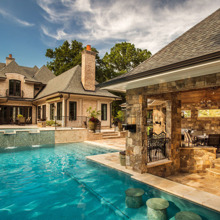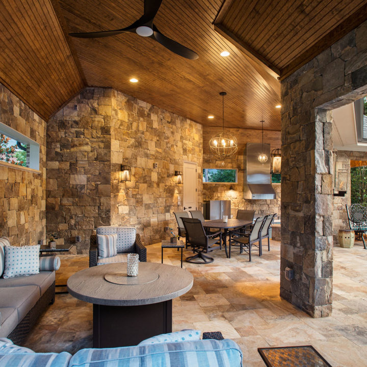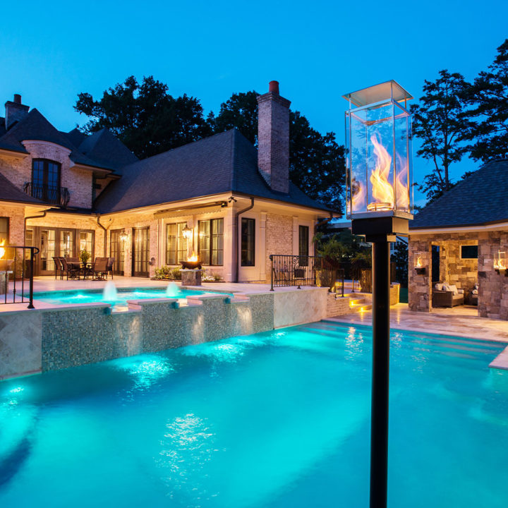 This project features detailed stonework that is interwoven with fire and water. We are blending all the elements: Earth, Fire, Water, and Air to bring about a tranquil, calming oasis for the homeowner to relax and unwind. These blended elements relate to a textural juxtaposition.